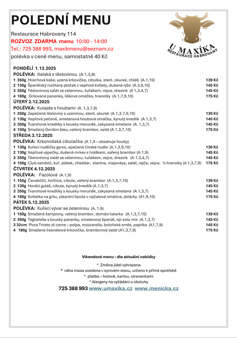 POLEDNÍ MENU VÁM TAKÉ PŘIVEZEME