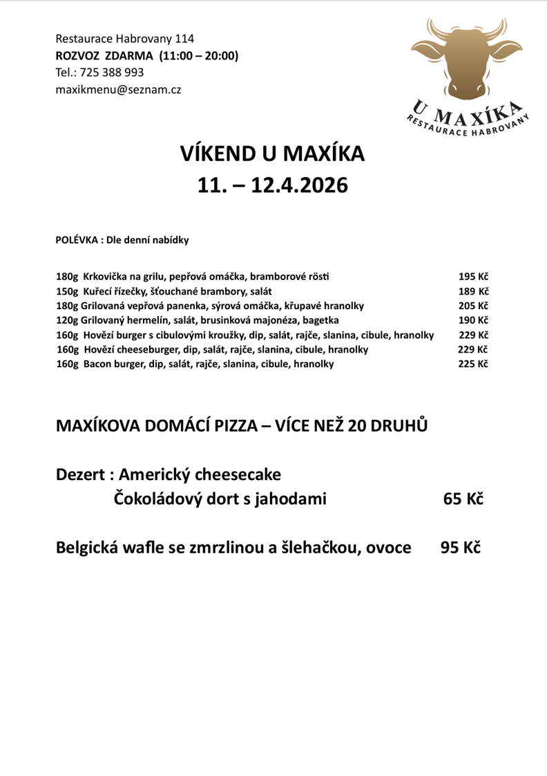 Jsme NOVĚ OTEVŘENÁ rodinná restaurace v Habrovanech.