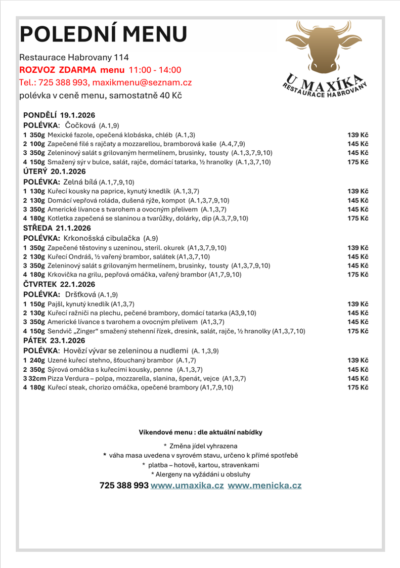OBĚDOVÉ MENU ROZVÁŽÍME 9:30 - 14:00